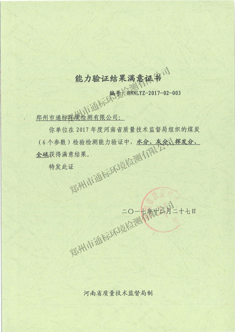能力驗證結果滿意證書